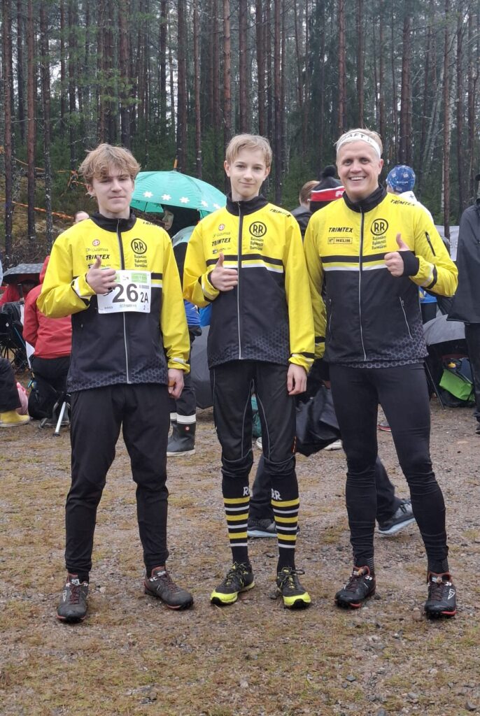 Kilpasarjan kakkososuuden juoksijat Topias Hietala, Simo Väkiparta ja Pyry Niemi valmiina lähtöön. Kuva Jukka/Jukkis Hietala.