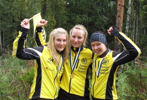 Myös tyttöjen 16-vuotiaiden joukkue Marika Suominen, Sirkku Minkkinen ja Maaret Turunen oli suurin voittajasuosikki. Kahdella ensimmäisellä osuudella Marika ja Sirkku tekivät hieman virheitä, mutta siitäkin huolimatta Maaret pääsi ankkuriosuudelle johtoasemassa. Edellisen päivän keskimatkan mestari ei antanut muille mahdollisuuksia ja näin tytöt pääsivät juhlimaan mestaruutta seitsemän minuutin erolla hopealle tulleeseen Turun Suunnistajiin. Rykmentin mitalijuhlat täydensivät tyttöjen 20-vuotiaiden joukkue Ilona Lehtinen, Sanna Minkkinen ja Hanna Raitanen, joka suunnisti pronssille.